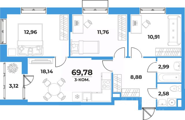 Продаётся 3-комн. квартира площадью 69,87 кв.м на 10 этаже 10 этажного дома (Корпус 10, Секция 2) проекта ПИК Северный парк. Светлый просторный подъезд на уровне земли, функциональная планировка, большие окна, без отделки. "Северный парк" - жилой квартал в развитом Железнодорожном районе Хабаровска с закрытыми дворами-парками, школой, детским садом и спортхабом. До центра города получится добраться за 10 минут на автомобиле. "Северный парк" возводится на пересечении улиц Воронежской и Совхозной, в 10 минутах езды от центра Хабаровска. В проекте будет 30 корпусов. Входы в подъезды "Северного парка" мы сделаем на уровне земли для комфортного перемещения по территории квартала любым способом: пешком, на самокате или с коляской. Благодаря панорамному остеклению, которое пропускает много естественного света, первые этажи будут просторные и светлые. В квартирах предусмотрены большие окна, застеклённые балконы и лоджии - будет светло и уютно даже зимой. Все квартиры сдаются с предчистовой или полной отделкой на выбор. В каждом дворе будет парк - тихое приватное пространство для жителей, где красиво и уютно в любое время года и можно расслабиться после рабочего дня. Через весь квартал протянется широкий пешеходный бульвар с велодорожками, велопарковками, зонами для отдыха, детскими и спортивными площадками. В "Северном парке" будет всё необходимое для комфортной жизни: на первых этажах откроются магазины, кафе и полезные сервисы. Внутри жилого квартала запланировано строительство школы и детского сада. Для удобства жителей предусмотрены многоуровневые паркинги, индивидуальные кладовые и колясочные. Артикул 989108 (Застройщик ООО "СЗ ПРОЕКТ СТРОЙ") Продается 3-комнатная квартира 70 м2 в Хабаровском крае.