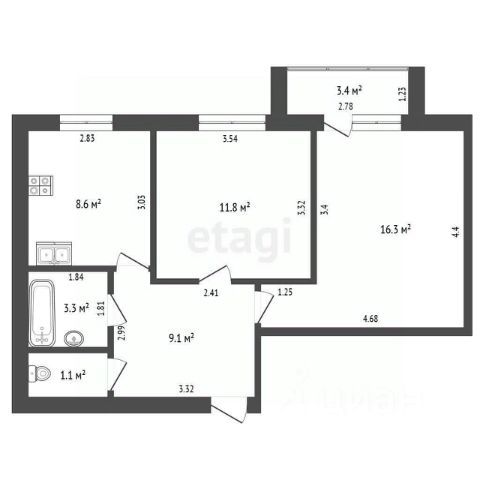 • ✓ В базе Циан 1 3-комнатных квартир без ремонта на проспекте Строителей в городе Амурск