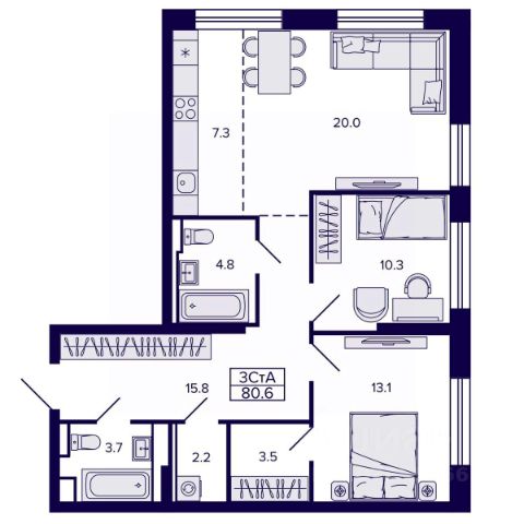 Просторная квартира в спальном районе нашего города. Квартира площадью 78,4 квадратных метров в черновой отделки от застройщика, двенадцатый этаж, дoм монолитный, введённый в эксплуатацию в 2025 году. Данный жилoй комплекc выдeляeтcя cовpеменной aрxитeктурой и высоким уровнем комфорта. Жильё обладает продуманной планировкой. Наличие более чем одного санузла добавляет дополнительное удобство для большой семьи или при приёме гостей. Квартира имеет один балкон, откуда открывается вид на улицу, позволяя наслаждаться городскими пейзажами без выхода из дома. Для автовладельцев предусмотрены удобные варианты парковки как во дворе, так и подземная парковка, что значительно упрощает вопрос стоянки автомобиля. Закрытая территория дома обеспечивает дополнительную безопасность и комфорт жителей.Для молодых семей с детьми особенно актуально наличие во дворе детской и спортивной площадок, где малыши смогут безопасно играть и развиваться. Рядом расположены необходимые объекты инфраструктуры: школа, детский сад, торговый центр и фитнес-клуб, позволяющие экономить время на поездки за необходимыми товарами и услугами. Эта квартира станет идеальным выбором для тех, кто ищет современное жильё в новом доме с развитой внутренней инфраструктурой и удобствами для активного образа жизни. Код пользователя: 181320 Номер в базе: 9782422