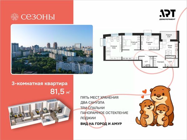 Квартира 81,53 кв.м свободной планировки с видами на город.