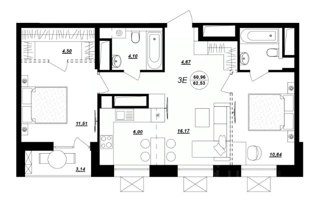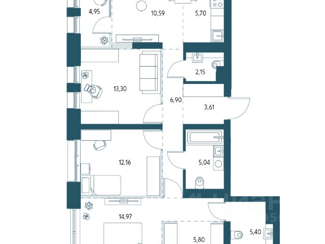 Просторная светлая 3-комнaтная кваpтира 90-92 м². Здесь 3 отдельные комнаты, большая кухня-гостиная для семейных посиделок, 2 комфортных санузла, гардеробная и балкон с панорамным видом, который можно оборудовать как зону отдыха или рабочее место.
