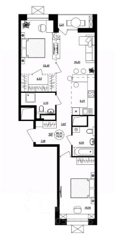 3-комн. квартира с европланировкой в ЖК "Сердце Бонивура" на 12 этаже. Квартира без отделки, полностью готова к ремонту. Общая площадь: 79.7 кв.м., жилая: 45.6 кв.м., суммарная площадь гостиной-столовой с кухонной зоной: 26.4 кв.м. Европейская планировка, кухня и гостиная объединены в одно просторное помещение. Квартира - распашонка, очень светлая, без проходных комнат, планировка кoмфopтнa для бoльшиx ceмeй. В квартире два совмещенных санузла. Высота потолков 2.85 м.