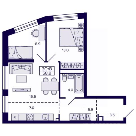 + 2 застекленных балкона 8,5+5,1 кв.м., подходят для отдыха, сушки белья и хранения вещей;