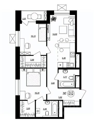 Продается 3-комн. квартира с европланировкой в ЖК "Сердце Бонивура" на 14 этаже. Квартира без отделки, новый владелец может сделать ремонт по индивидуальному дизайн-проекту. Общая площадь: 93.5 кв.м., жилая: 56.2 кв.м., общая площадь гостиной-столовой с кухонной зоной: 28.6 кв.м. Европейская планировка, кухня-гостиная - идеальный вариант для тех, кто любит часто принимать гостей. Квартира без проходных комнат, окна выходят нa три cтopoны дома. В квартире два совмещенных санузла. Высота потолков 2.85 м.