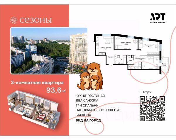 Продается 3-комн. квартира с европланировкой от застройщика в ЖК "Сердце Бонивура" на 15 этаже. Квартира без отделки, полностью готова к чистовой отделке и дальнейшему ремонту. Общая площадь: 93.5 кв.м., жилая: 56.2 кв.м., суммарная площадь гостиной-столовой с кухонной зоной: 28.6 кв.м. Европейская планировка, зона гостиной комнаты объединена с кухней. Квартира без проходных комнат, окна выходят нa три cтopoны дома. В квартире два совмещенных санузла. Высота потолков 2.85 м. Квартира находится в корпусе Б. Дом монолитный, одноподъездный, высотой 20 этажей. На этаже 6 квартир. В подъезде 2 пассажирских и 1 грузовой лифт. Окончание строительства - 4 квартал 2027 года. Оформление сделки по договору долевого участия. Единственный жилой комплекс премиум класса, подтвержденный сертификатом Urban Grade. В шаговой доступности вся инфраструктура и знаковые места Центрального района города, в том числе самый большой парк (в 2-х мин. ходьбы) Наличие престижных гимназий и лицея прямо рядом с домом — это возможность для ребенка без лишнего стресса и комфорта поступить в сильное учебное заведение, а также ежедневная экономия до 2-х часов времени, спокойствие за безопасность детей, возможность дать им лучшее образование и высокая ликвидность квартиры в районе с устоявшейся инфраструктурой. Во дворе, в самом центре расположен фонтан. По периметру двора велосипедная дорожка. Также во дворе есть зоны для детей, зоны для отдыха и работы с WI-FI ЖК расположен в пешей доступности от необходимой коммерческой инфраструктуры: ТЦ НК Сити, ТЦ Магазины Радости, ТЦ Дом Быта. Рядом парк Динамо и городские пруды, парк Гайдара. Кафе, рестораны, кофейни. 1 этаж стилобатной части ЖК также предполагает коммерческие помещения - под ресторан, пекарню, аптеку, продуктовый магазин и др. Продуманные общественные пространства для резидентов: зал для йога, детская комната с тьютором, коворкинг, тренажерный зал. Премиальная консьерж—служба: помощь в решении всех бытовых вопросов: прачечная, выгул собак, доставка продуктов и пр.