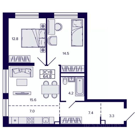 • ✅ Минимальная площадь: 46,3 м²