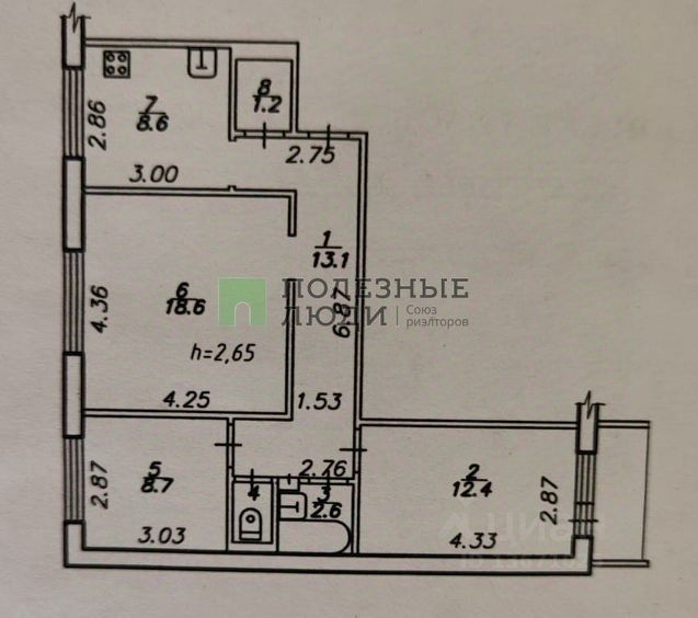 - 2/5 этаж, 59,0 кв.м. общая площадь, большая 8,4 кв.м. кухня!