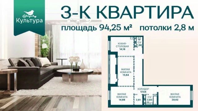- 8/9 этаж, 57,1 кв.м. общая площадь, тёплый кирпичный дом