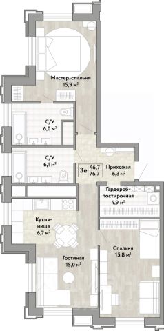 Зимние скидки! Выгода до 1,9 миллиона рублей. Цены от 7,2 миллионов рублей. Квартира 86,69 м2 свободной планировки с видами на город.