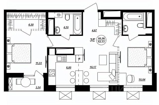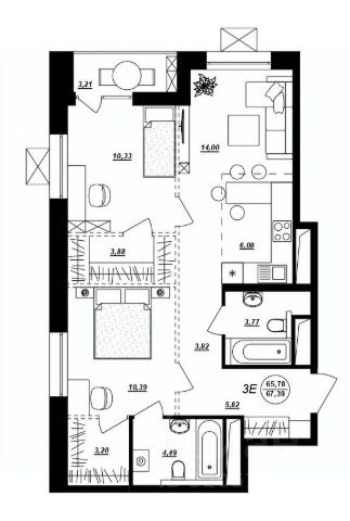 + выполнена сантехническая разводка с датчиками протечек в мокрых зонах, коллектор спрятан, есть на фото,