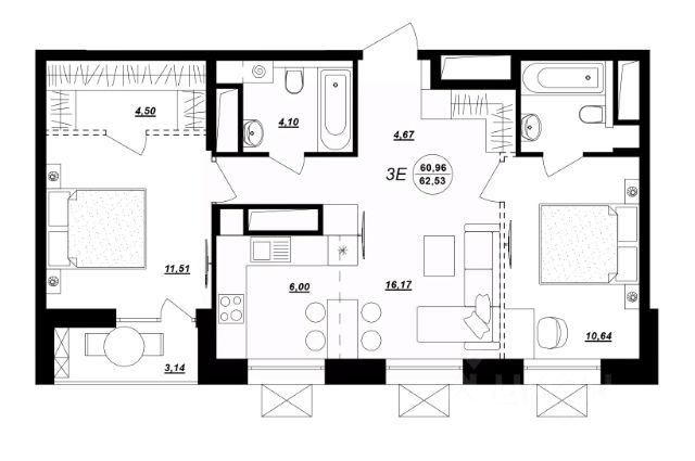Комнаты изолированные,санузел раздельный, смотрите план квартиры в фото.