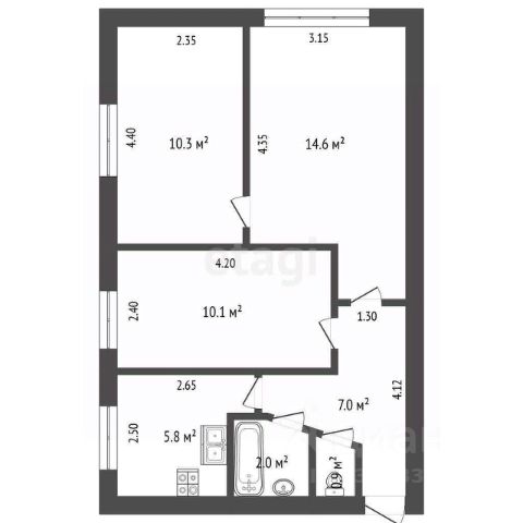 Общая площадь квартиры 57,5 кв. м., жилая 39,2 кв.м., уютная кухня 6 кв.м., с/у совмещен (перепланировка узаконена).