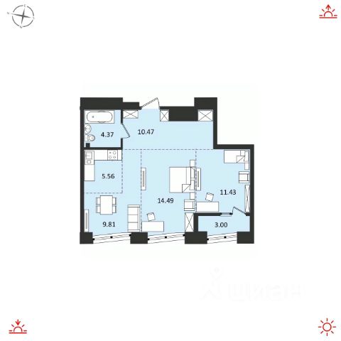 Осенние скидки! Выгода до 1,9 миллиона рублей. Стартовые цены - от 7,5 миллионов рублей. Квартира 86,69 м2 свободной планировки с видами на город.