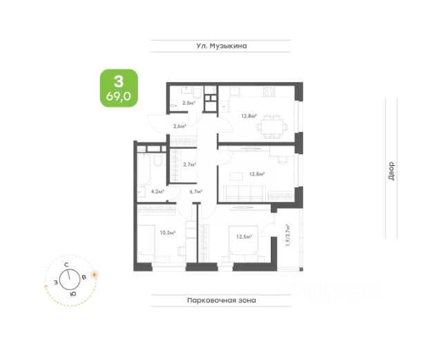 Светлая и просторная 3-комнатная квартира с уникальной планировкой. • Просторный коридор 10,7 кв.м. с нишей для гардеробного шкафа добавит удобства и функциональности; • Кухня-гостиная площадью 22,6 кв.м. с выходом на лоджию 4,5 кв.м. станет уютным центром для семейных встреч; • Две жилые комнаты имеют по два окна и наполняются естественным светом в течение дня; • Третья комната идеально подойдёт для спальни или кабинета; • Два санузла обеспечат комфорт для всей семьи.