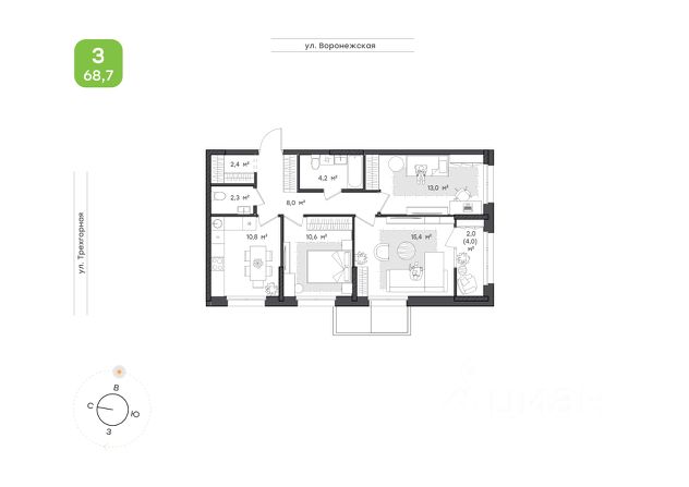 🔷 Средняя цена за м2:117 тыс. руб./м²