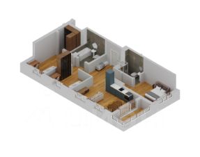 Функциональная планировка с действительно просторными помещениями: кухня-гостиная 23,6 м2, две раздельные спальни 19 м2 и 18 м2 с выходами на лоджии, раздельный санузел.