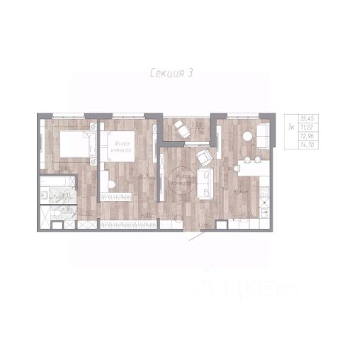 • ✅ Минимальная площадь: 64,9 м²
