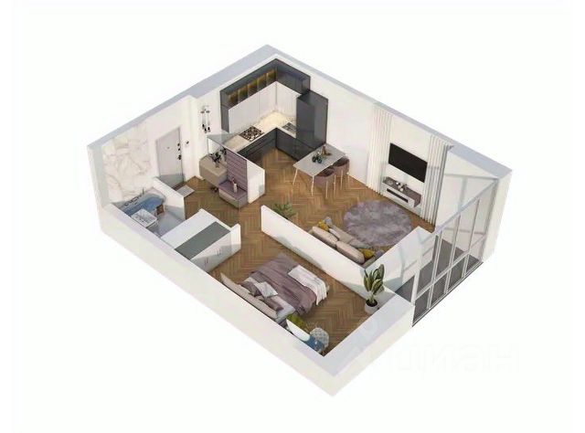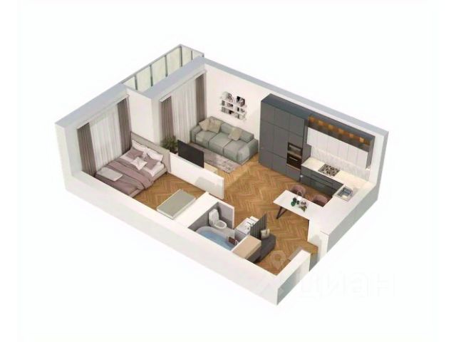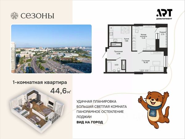 Зимние скидки! Выгода до 1,7 миллиона рублей. Квартира 43,06 м2 свободной планировки с видами на Амур и Броско.