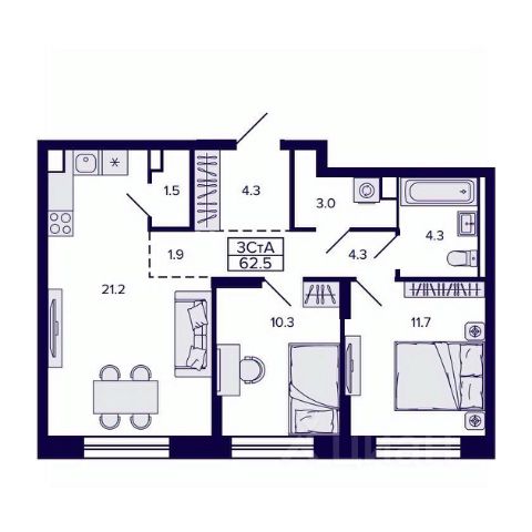 Продаётся 3-комнатная квартира в строящемся доме (Корпус 4), срок сдачи: II-кв. 2028, общей площадью 65.3 кв.м., на 3 этаже. Новый жилой комплекс "Самородный квартал" от Специализированного застройщика "ВИРА 27" расположен в г. Хабаровск по ул. Карла Маркса.