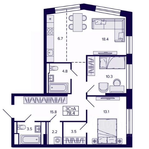 Продаётся 3-комнатная квартира в строящемся доме (Корпус 4), срок сдачи: II-кв. 2028, общей площадью 82.9 кв.м., на 4 этаже. Новый жилой комплекс "Самородный квартал" от Специализированного застройщика "ВИРА 27" расположен в г. Хабаровск по ул. Карла Маркса.