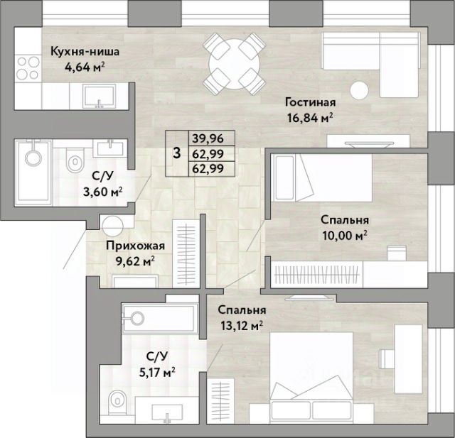 Продается 3-комн. квартира с европланировкой и предчистовой отделкой в ЖК "Stories" на 5 этаже. Общая площадь: 59.01 кв.м., жилая: 32.44 кв.м., суммарная площадь гостиной-столовой с кухонной зоной: 21.48 кв.м. Европланировка, площадь комнат позволяет разместить в них все необходимое, а в просторной кухне-гостиной удобно как готовить, так и отдыхать. Комнаты изолированные, все окна выходят на одну сторону. В квартире два совмещенных санузла. Высота потолков 2.9 м.