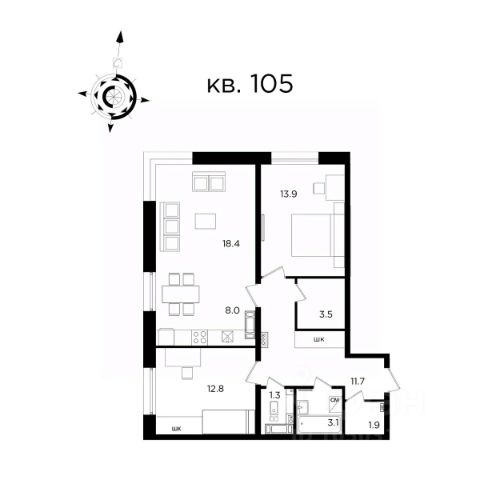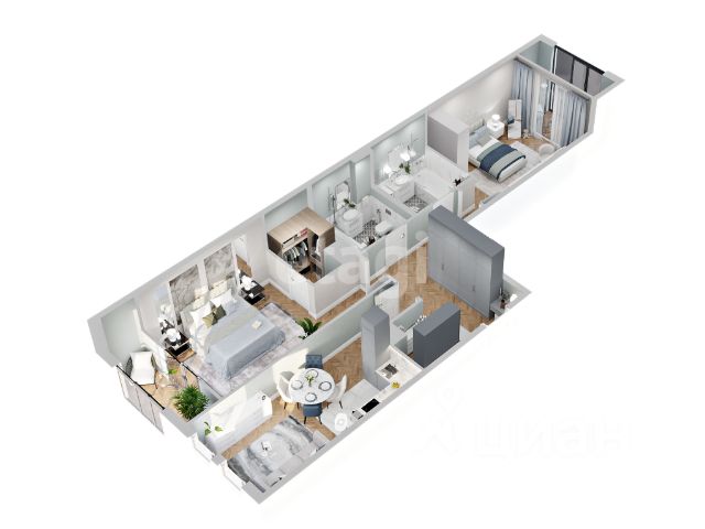 Двухкомнатная квартира евроформата с отдельным личным входом. • Коридор с гардеробной добавит дополнительное пространство для хранения; • Кухня-гостиная площадью 17,5 кв.м. станет уютным местом для семейных встреч и отдыха; • Просторная мастер-спальня оснащена отдельным санузлом и гардеробной для вашего комфорта; • Вторая комната идеально подойдёт для спальни или кабинета; • Наличие двух санузлов обеспечит комфорт даже для большой семьи.