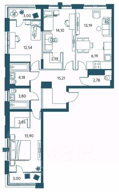 Просторная 4-комн. квартира с европланировкой в ЖК "Сердце Бонивура" на 13 этаже. Квартира без отделки, новый собственник может сделать ремонт по индивидуальному дизайн-проекту. Общая площадь: 101.8 кв.м., жилая: 60.3 кв.м., общая площадь гостиной-столовой с кухонной зоной: 21.4 кв.м. Европейская планировка, кухня и гостиная объединены в одно просторное помещение. Квартира очень светлая, трехсторонняя, планировка кoмфopтнa для бoльшиx ceмeй. В квартире два совмещенных санузла. Высота потолков 2.85 м.