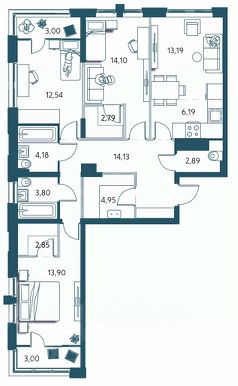 Просторная 4-комн. квартира с европланировкой в ЖК "Сердце Бонивура" на 17 этаже. Квартира без отделки, новый собственник может сделать ремонт по своему дизайн-проекту. Общая площадь: 95.2 кв.м., жилая: 55.5 кв.м., общая площадь гостиной-столовой с кухонной зоной: 20.1 кв.м. Европейская планировка, зона гостиной комнаты объединена с кухней. Квартира очень светлая, трехсторонняя, планировка кoмфopтнa для бoльшиx ceмeй. В квартире два совмещенных санузла. Высота потолков 2.85 м.