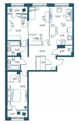 Квартира 94,81 кв.м. свободной планировки с видами на город и Дендрарий.