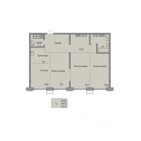 Просторная четырехкомнатная квартира с европланировкой в ЖК "Сердце Бонивура" на 2 этаже. Квартира без отделки, новый владелец может сделать ремонт по индивидуальному дизайн-проекту. Общая площадь: 107.9 кв.м., жилая: 69.5 кв.м., суммарная площадь гостиной-столовой с кухонной зоной: 32.5 кв.м. Европейская планировка, кухня-гостиная - идеальный вариант для тех, кто любит часто принимать гостей. Квартира угловая, очень светлая, естественная вентиляция при открытии окон. В квартире два совмещенных санузла. Высота потолков 2.85 м.