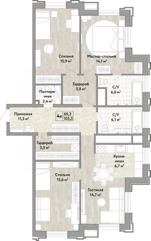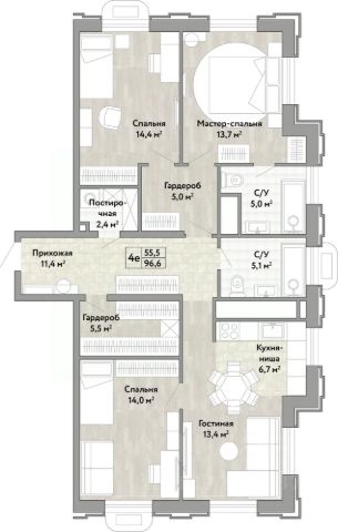 4-комн. квартира с европланировкой в ЖК "Сердце Бонивура" на 12 этаже. Квартира без отделки, полностью готова к ремонту. Общая площадь: 98.6 кв.м., жилая: 63.8 кв.м., общая площадь гостиной-столовой с кухонной зоной: 24.8 кв.м. Европейская планировка, кухня-гостиная - идеальный вариант для тех, кто любит часто принимать гостей. Квартира угловая, очень светлая, естественная вентиляция при открытии окон. В квартире два совмещенных санузла. Высота потолков 2.85 м.