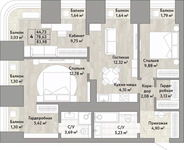4-комн. квартира с европланировкой и предчистовой отделкой в ЖК "Stories" на 21 этаже. Общая площадь: 78.63 кв.м., жилая: 44.73 кв.м., общая площадь гостиной-столовой с кухонной зоной: 16.42 кв.м. Европейская планировка, за счет большой площади кухни-гостиной квартира выглядит просторной и очень удобна для жизни. Квартира угловая, очень светлая, естественная вентиляция при открытии окон. В квартире три балкона, два совмещенных санузла. Высота потолков 2.9 м. Квартира находится в корпусе Башня Детство. Дом монолитный, одноподъездный, высотой 22 этажа. На этаже 8 квартир. В подъезде 2 пассажирских и 1 грузовой лифт. Окончание строительства - 2 квартал 2026 года. Оформление сделки по договору долевого участия. 4 монолитные башни по 22 этажа, расположенные на стилобате. Stoies стал лучшим строящимся ЖК на Дальнем Востоке по версии премии Urban Awards Башня REST - это лаундж зона с камином на 1 этаже и Комната для йоги и медитации для жильцов Башня CHILD - это двухуровневая детская комната с игровыми зонами для детей разного возраста Башня INTELLEСT - это библиотека и читальный зал на 1 этаже где жильцы смогут обмениваться прочитанными книгами Башня BUSINESS- это просторная переговорная и небольшие коворкинг зоны для жильцов В концепции жилого комплекса заложены • максимальная забота о детях; • карьерная и деловая активность; • отдых и спокойствие, общение и саморазвитие, которые отражаются в общественных пространствах каждой из башен и придомовой территории Всей территорией и всеми общественными пространствами могут пользоваться все жители проекта независимо от башни в которой живут. В башне Rest любой из резидентов сможет погрузиться в теплую и расслабляющую атмосферу, провести время в приятноѝ компании в кресле у камина или просто насладиться моментом уединения. Также здесь будет отдельное уютное помещение для занятиѝ ѝогоѝ и медитации. Башню Child оценят молодые мамы, семьи с детьми. Для маленьких жильцов оборудована первая в Хабаровске игровая комната в жилом комплексе с зонированием по возрастам. Она предлагает уникальные возможности для развлечения и развития детеѝ разного возраста и темперамента. Башня INTELLECT станет местом, где вы сможете наслаждаться музыкоѝ, обмениваться книгами и пластинками с другими жильцами дома. Библиотека будет центром интеллектуальноѝ и культурноѝ жизни дома. Башня Business создана для предпринимателей и людей с удаленным форматом работы. Здесь будет ресепшн и коворкинг с переговорноѝ комнатоѝ, где комфортно работать и проводить встречи. Это отличная возможность вести дела, не покидая жилой комплекс. #zm9oda Купить 4-комнатную квартиру с балконом в Хабаровске.