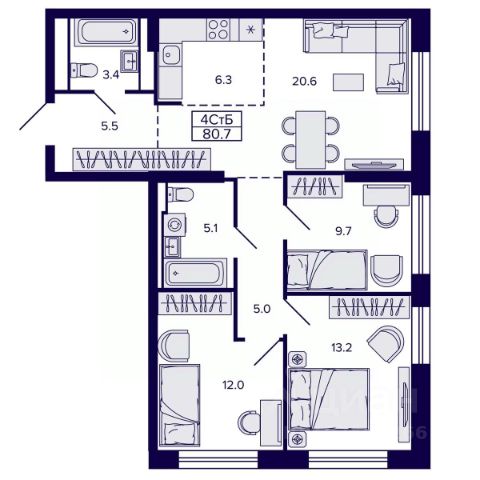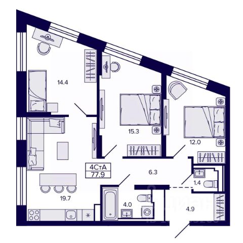 Квартира имеет изолированные друг от друга спальные комнаты и гостиную, довольно комфортные по площади, отдельную кухню, большую прихожую и два санузла, теплую лоджию- столовую. В квартире установлен водонагреватель , есть встроенный сейф, камин.