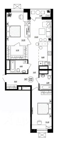 Продается видовая 3-комнатная квартира в клубном доме "Дом у озера" от "ТАЛАН"