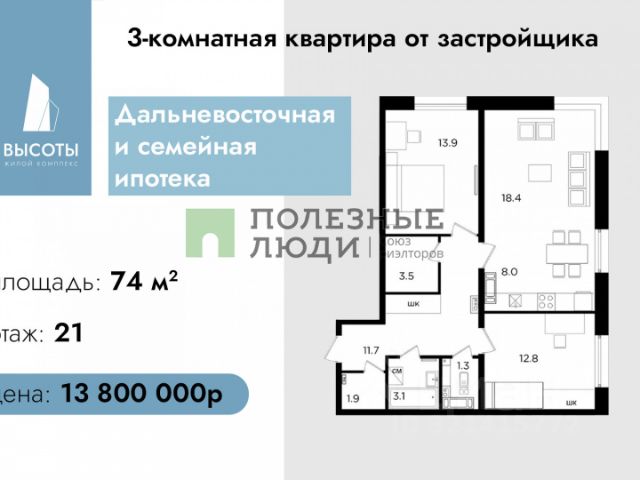 Предлагается к продаже 3-комнатная квартира евроформата в монолитном доме ЖК "Высоты". ДОМ СДАН - ключи на сделке. Прямая сделка с застройщиком без дополнительных комиссий - ПОДХОДЯТ ДАЛЬНЕВОСТОЧНАЯ И СЕМЕЙНАЯ ИПОТЕКИ. Отделка whitebox: — шумоизоляция, полусухая стяжка пола: — улучшенная штукатурка на стенах - можно наносить финальное покрытие (обои/краска/декоративная штукатурка); — разводка электрики до мест подключения; — проложена трасса для кондиционера, на фасаде установлены корзины для внешних блоков; — установлены подоконные доски и пластиковые откосы на окнах. Окна выходят в сторону Амура и Ерофей-Арены (юго-западная сторона света). Просмотр квартиры в удобное для вас время. Арт. 115500880