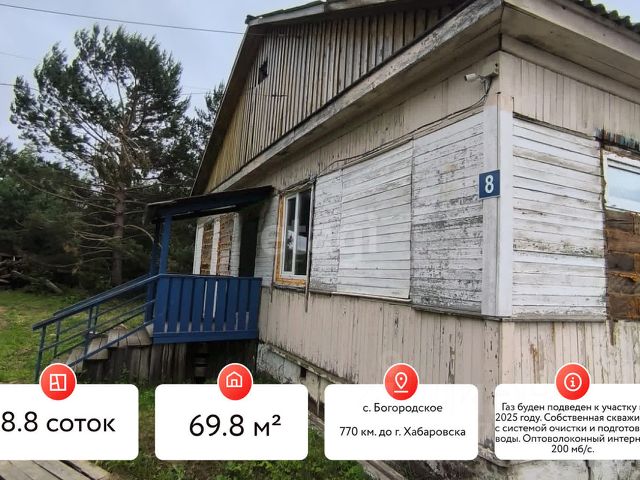 Продаётся дом, расположенный в черте города. В доме три комнаты с пластиковыми окнами и натяжными потолками. Туалет и ванная комната облицованы кафельной плиткой. Для комфортного проживания предусмотрены центральное и автономное отопление. По договорённости остаётся мебель и бытовая техника. На участке имеется большая основательная теплица с продуманной системой полива, а также два парника. Великое количество декоративных и плодовых кустов добавляют уникальности и красоты этому месту. Дополнительно владельцу доступен металлический гараж. Дом находится в шаговой доступности от отделения почты, школы, продуктовых и промышленных магазинов. Этот дом идеальный выбор для любителей сада и огорода прямо в городе. Комиссия агентства 30 000 руб Продам часть дома в Хабаровском крае.