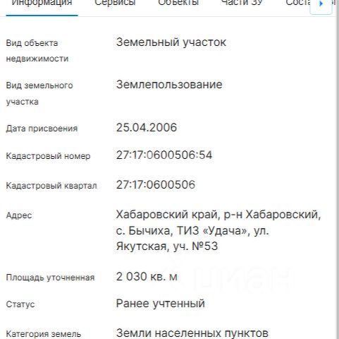 Номер объекта: #1/540203/20372 Купить участок для дачи в селе Бычиха Хабаровского района.