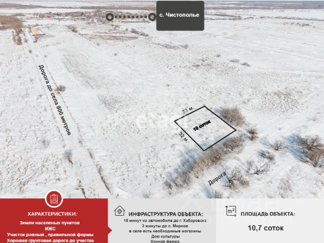 Участок 10 соток ИЖС в Лесном! 30 мин до Хабаровска, все коммуникации Описание: Продается земельный участок 10 соток в перспективном селе Лесное! Всего 30 минут на автомобиле до Хабаровска — идеальный баланс загородной жизни и городской доступности. Ключевые преимущества: • Площадь: 10 соток с проведенным межеванием • Статус: Земли населенных пунктов, под ИЖС • Расположение: 191 м от ул. Новая, удобный подъезд • Транспорт: Рядом трасса Хабаровск — Комсомольск-на-Амуре • Коммуникации: есть возможность подведения электричества О участке: Участок полностью подготовлен к строительству. Категория земель позволяет возводить жилой дом с последующей пропиской. Все границы четко определены. Инфраструктура: Село Лесное имеет развитую инфраструктуру: Удобная транспортная развязка Магазины первой необходимости Школа и детский сад в соседних населенных пунктах Быстрый выезд на ключевые автомагистрали Документы: Право собственности зарегистрировано, все документы в полном порядке. Рассмотрим разные формы расчета: Наличный расчет Ипотека Рассрочка Перспективы: Район активно развивается, стоимость земли постоянно растет. Это выгодная инвестиция в недвижимость и возможность построить дом своей мечты в экологически чистом месте. Не упустите шанс приобрести участок в одном из самых перспективных направлений развития Хабаровского края! Звоните для записи на просмотр и расчета вашей выгоды! Код пользователя: 189201 Номер в базе: 9907925