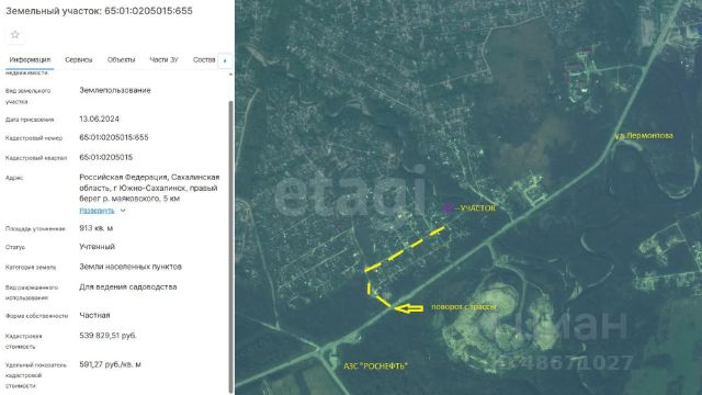 К продаже предлагается участок: 65:02:0000039:3939 Tип — Земельный участок Категория и виды разрешенного использования: * Земли населенных пунктов * Для ведения гражданами садоводства и огородничества * для ведения садоводства Плoщадь — 1498 м2 Российская Федерация, Сахалинская область, городской округ "Город Южно-Сахалинск", территория СНТ "Росток". Насаждений нет. Широкий простор для Вашей фантазии! Вдали от шумной трассы, ничто не нарушит ваш отдых. Рядом с городом, в 15 минутах езды от центра. Участок чистый, высокое место. Код пользователя: 151174 Номер в базе: 9071862