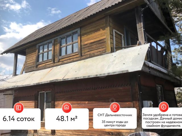 Расположен в одном из лучших коттеджных поселков Хабаровска Солнечная поляна, всего 20 езды минут до центра города, между Тополево и поселком им. Горького! Здесь есть все для комфортной жизни: • 3 средние школы (до школы в с. Мирное всех детей возит бесплатный автобус!) • 7 детских частных и муниципальных садов • Пятерочка, Светофор • ТЦ Стрелка К поселку ведет асфальтированная дорога! В планах на 2026г газификация поселка! О доме и участке: В доме удобная планировка (перегородки еще не стоят, можно изменить под свои потребности) На первом этаже: • Светлая гостиная 27,53 кв м с выходом на будущую террасу. • Вместительный санузел 4,5 кв м • Техническое помещение под лестницей 3 кв м На втором этаже: • 2 просторные спальни по 13,6кв м • Вторая ванная комната 5,08 кв м! На втором этаже можно сделать 3 спальни! Дом построен по сборно- монолитной технологии с утеплением стен по нормам ДВ - 150мм! Перекрытия в доме железобетонные, фундамент сваи железобетонные. Установлены качественные панорамные 5- камерные окна! входная дверь с терморазрывом. В доме уютный мансардный второй этаж высота от 1,7 до 3,5м в самой высокой точке!! Кровля с утеплением 200мм базалитом, покрыта металлочерепицей, установлена водосточная система. Участок идеальный по площади 8 сот, ровный. Здесь с легкостью разместятся: гараж, сад и даже баня с бассейном! Коммуникации: Электричество 15 кВт Имеется возможность подключить к центральным сетям водоснабжения и канализации!!! О поселке: Для детей этот коттеджный поселок - просто Рай: • огромнейшая детская площадка с качелями, турниками и горками • волейбольная площадка • футбольная коробкой (а зимой хоккейная) с подсветкой! Цена этого уютного дома просто мечта всего 5,9 млн р!!! ПОДХОДЯТ СЕМЕЙНАЯ И ДАЛЬНЕВОСТОЧНАЯ ИПОТЕКИ! Можно с минимальным первоначальным платежом! Звоните сейчас по просмотру! Продаю двухэтажных коттедж в Хабаровском крае..
