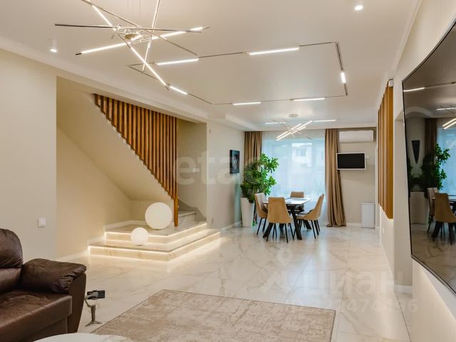 Продам современный Дом в статусе трех уровневой квартиры. Общая площадь 310.5кв.м. Сделан качественный дизайнерский ремонт с европейскими материалами, на каждом этаже ванная с санузлом. Первый этаж. Просторная прихожая с выходом в теплый гараж, санузел и большая кухня- гостиная. На полу теплый пол- керамогранит, заниженные каменные подоконники, витражные окна в два этажа с легкой тонировкой, высота потолков 2.7кв.м., зонирование света софитов. В кухонной зоне вся встроенная техника фирмы BOSCH. Второй этаж три большие комнаты, теплая лоджия, постирочная, гардеробная комната, шикарная ванная в керамограните с окном в пол. На полу уложен кварцвинил, дизайнерские радиаторы, различные световые решения и на полу и на потолке, теплый пол. Третий этаж две комнаты и гостинная, санузел, гардеробная, распределительный узел, кладовая. На полу паркет, на потолке вагонка- окрашена в белый цвет, санузел теплый пол и керамогранит. Монолитная лестница отделана керамогранитом и деревом, с теплой подсветкой. Гараж на две машины, выход в гараж из прихожей, дверь противопожарная, на полу керамогранит и теплый пол. Котельная находится в гараже- два газовых котла, бойлер на 100л, водоочистка. Отопление газовое, в месяц квитанция на 5т.р. Водоснабжение централизованное, канализация центральная, есть скважина, если нужно. По всему периметру вентиляционная система, дом очень теплый и светлый- много естественного света. Также в каждом помещении установлены кондиционеры. Выходы на две стороны дома, есть ландшафтный дизайнерский проект, который с удовольствием подарим новому собственнику для облагораживания придомовой территории. Все материалы были заказаны из Европы, осветительные приборы в том числе. Можно много перечислять все достоинства этого дома, всё делали для себя, а не для продажи, дом купили в 2021 году, ремонт свежий. В реале еще лучше чем на фото и в описание, лучше один раз посмотреть. Один взрослый собственник, долгов никаких нет. Инфраструктура развита, садики, школы, магазины в шаговой доступности. Звоните сейчас, и я с удовольствием вам покажу этот замечательный дом. Код пользователя: 53140 Номер в базе: 9983294