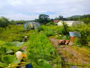 С двух сторон дома шланги, которые подключены к системе, для удобного полива. Земля плодородная, урожая много, начиная с зелени заканчивая ягодами.