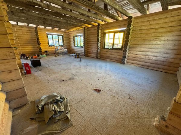 Баня расположена в пятнадцати метрах от дома. Размер 7х4,5 м, построена на капитальном фундаменте из ростверка, бревенчатая из осины, снаружи отделана блокхаусом из кедра, окна и двери также из кедра, внутренняя отделка выполнена из липы, печь металлическая титан, камни в парной с перекатов реки Си, район п. Мухен.