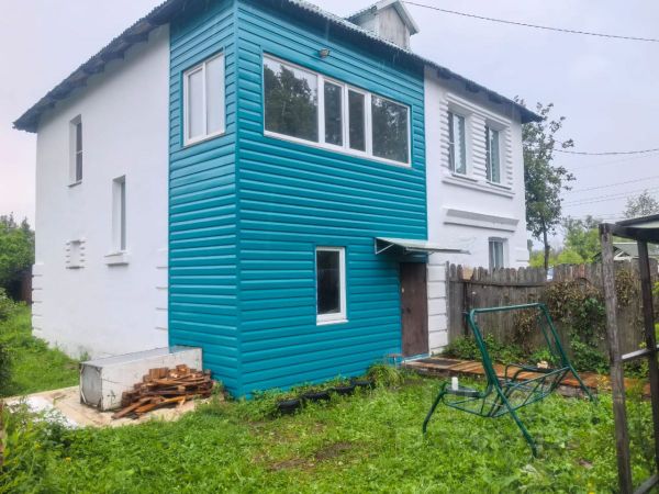 Сам дом свежей постройки из сип панелей (2018г), в 2024 году обшит фасадными панелями docke все со вкусом. На территории имеется строительный вагончик, который используется для хранения инструментов и техники, а также теплая будка для собаки. В 2025г двор был выложен плиткой.