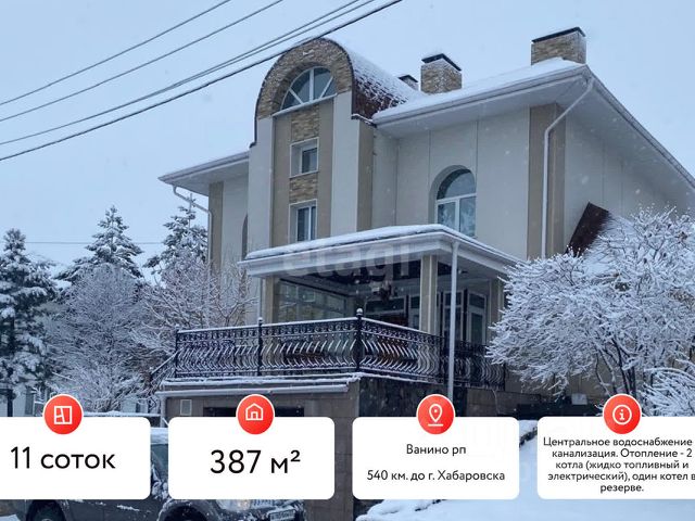 Шикарный коттедж, построен из кирпича, толщина стен 60, облицовка тоже кирпич, крыша гибкая черепица. Великолепная планировка: на первом этаже тренажерный зал, зал с кухней совмещены, кабинет, бойлерная, большая ванная, туалет и просторный холл + 2 входа; на втором этаже мастер-спальня с гардеробной и ванной комнатой, три комнаты и просторный холл с выходом на балкон. Отделка не завершена: стены проштукатурены, сделана полностью вся электрика, теплые водные полы на обоих этажах, полностью закончена работа по воде, отоплению, канализации. Канализация шамбо, но в ближайшие 2 мес будет центральная врезка. Стоит 2 котла и 2 больших бойлера, фильтры. Газ будет точно в 2026 году, он уже подведен к Солнечной поляне. Куплены унитазы, полотенцесушители и ванна. Все делала с любовью для себя. Очень хочется продать заботливым людям. +Гараж из кирпича на две машины, два этажа: на первом гараж, на втором - гостевой дом, полностью жилой с мебелью и техникой (все остается). Можно заезжать и жить)) , очень комфортно и уютно. В гараже на обоих этажах теплые полы, котел, бойлер, подведена вода на оба этажа. Второй этаж как квартира - студия, разделена по зонам, есть отдельно входная группа и душевая с туалетом. Забор с двух сторон из кирпича, с двух других сторон профнастил. На участке есть фундамент под летнюю кухню - террасу. Участок очень тихий, с одной стороны лес, во двор залетают фазаны и удоды, бегают бурундучки. Прекрасные соседи. Очень люблю этот дом. Надеюсь найдется ценитель качественного строительства и хороших планировок. Это может быть также выгодным вложением. Единственный собственник, чистая продажа. Риэлторы, просьба не беспокоить! Либо с реальными покупателями. Продам большой дом в Хабаровском крае.
