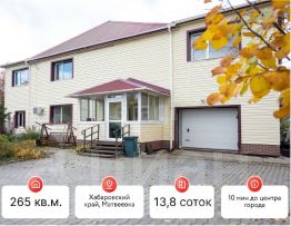 Продается уютный и просторный дом с большим участком в селе Матвеевка! Всего 15 минут до центра Хабаровска! Если вы мечтаете о жизни в собственном доме с чистым воздухом, тишиной и комфортом городской инфраструктуры — этот вариант идеально подойдёт именно вам. Характеристики дома: • Общая площадь — 265 м², 2 этажа • Материал стен —силикатный кирпич по ГОСТу, толщина 65 см (внутренние стены 40 см) • Обшивка сайдингом, утеплитель — пенополистирол • Пластиковые окна, добротная отделка • Электричество 30 кВт — подходит для подзарядки электромобиля • Газ подведён по границе, установлен газовый котёл • Центральное водоснабжение (сельская скважина) • Отопление электрическое, канализация — септик (Шабо) Участок: • Площадь — 13,8 соток (земля в подарок!) • Просторная беседка для отдыха • Шашлычно-мангальная зона • Небольшая теплица • Разработанные грядки — под посадку овощей или цветов • Ровный, ухоженный участок Инфраструктура: • В шаговой доступности школа и детский сад, на машине 2 минуты езды по асфальтированной дороге. • Остановка общественного транспорта — 15 минут пешком • Тихое, уютное место с доброжелательными соседями, асфальтированный подъезд Условия продажи: • Документы готовы к сделке • Рассмотрим любые виды расчёта • Подходит под использование материнского капитала ХОРОШИЙ ТОРГ!!!!! Код пользователя: 195399 Номер в базе: 10228305
