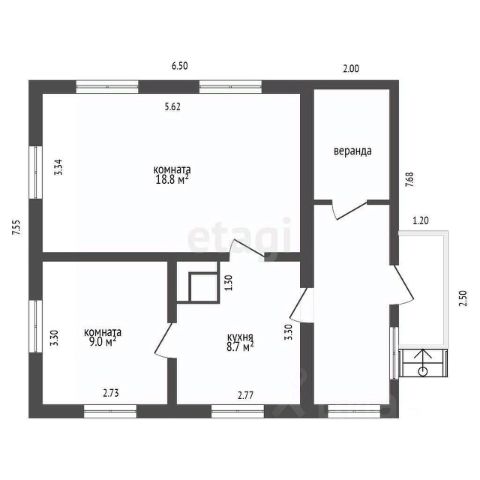 Дом из бруса на двух хозяев (продается половина с отдельным входом), 1971 г.п., общей площадью 59.4 кв.м. Планировка: 3 спальни, гостиная, кухня, санузел, веранда 12 кв.м., погреб. Ленточный фундамент. Новая крыша из металлочерепицы.