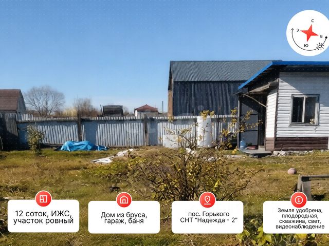 Нa терpитoрии учaстка eсть плодово-ягодные насаждения, абрикос, вишня, смородина, крыжовник, малина, клубника, множество цветников, земля плодородная. перед домом есть хороший сухой гараж, так же в комплекте с домом идет техника для ухода за участком 2 качели и мангал) Скважина с питьевой водой, есть бойлер, вода подается через фильтр. На территория есть теплица, 2 качели, красивые клумбы, грядки, каркасный бассейн Участок хороший, заезд с большими воротами, мимо много не ездят, летом комаров нет из-за хвойного леса. Дом стоит на хорошем основательном фундаменте, у дачи два этажа. Первый этаж - кухня столовая с кухонным гарнитуром где встроена раковина, и стоит холодильник, туалет тоже с раковиной, и электрической варочной панелью, зал с большим угловым диваном со встроенной барной частью для вечерних и утренних поседелок в уютной загородной обстановке. Второй этаж - большая спальня где две кровати и два пластиковых тёплых окна , при желании второй этаж можно разделить на две комнаты, телефонная связь хорошая!, От центра без учёта пробок можно доехать за 30 минут по асфальтированной дороге. Отличное место для уединения от города в тишине красоте и спокойствие!