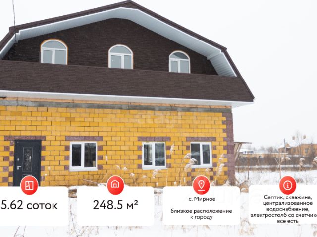 Общая площадь дома: 122,3 кв.м. (год постройки 2012г) Участок: 6 соток ТОРГ ОБСУЖДАЕМ ПОСЛЕ ПРОСМОТРА.. Характеристики - В доме на первом этаже: гостиная 30 кв.м., большая кухня 16 кв.м., санузел 5,5 кв.м., прихожая 4 кв.м., Бойлерная 4 кв.м., на втором этаже: спальня + гардеробная 18 кв.м., детская 16 кв.м., комната 9,5 кв.м., санузел 4 кв.м., (вся мебель остается), шикарный балкон. - При строительстве использовались только качественные экологичные материалы. - Дом построен с учетом природно-климатических условий региона, хорошо утеплен, относительно небольшие расходы на отопление. Основное отопление - электрический теплый пол по всей площади дома. Приятный бонус дровяной камин. - Дом кирпичный, толщина кладки 1,5 кирпича, утеплитель минеральная вата 15 см, утепленные перекрытия. - Электричество 15 кВт. (сельские тарифы на электроэнергию) - Центральное водоснабжение (холодная вода), горячая вода - котел. (разводка под два бойлера основной и резервный) - Имеются две системы канализации - шамбо и септик. (можно использовать любую из них) - Удобное место расположения коттеджного поселка, до центра 20 мин., две дороги, которые ведут в центр: Карла Маркса и Восточное шоссе (можно также через развязку в Южный), совсем рядом объездная дорога в Северный. - При въезде на придомовую улицу установлен шлагбаум, а на въезде в поселок, центральной улице и детской площадке установлено видеонаблюдение. - Участок благоустроен: теплица, плодово-ягодные насаждения, оборудованные места для летнего бассейна, беседки, барбекю. Инструменты (газонокосилка, автомойка и прочее) остаются в доме. - Продажа в связи с переездом. - Документы готовы к сделке, подходит под льготную ипотеку. Коттедж находится на территории коттеджного поселка, действует свой ТСН (Товарищество собственников недвижимости). Жители сами принимают участие в вопросах развития поселка, каждый год ремонтируются дороги, привлекаются муниципальные деньги (в виде грантов) на обустройство поселка (хоккейная коробка с катком зимой, футбольное поле летом, уличный кинотеатр, обустроенная ухоженная детская площадка со спортивными тренажерами). Фото по запросу. Поселок активно развивается! Есть школьный автобус, в пешей доступности детский сад. Продается дом в селе Мирное Хабаровского района.
