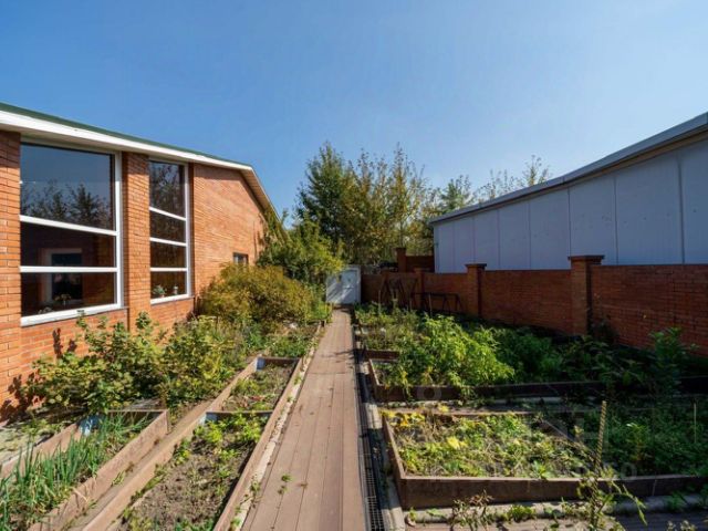 На участке находится деревянное строение 24 х 6 метров из бруса 120 х 120 мм, обшитое евровагонкой "елочка", где расположены хозяйственное помещение, склад, комната отдыха, баня, парилка. Имеется утепленный металлический гараж 6 х 4 м.